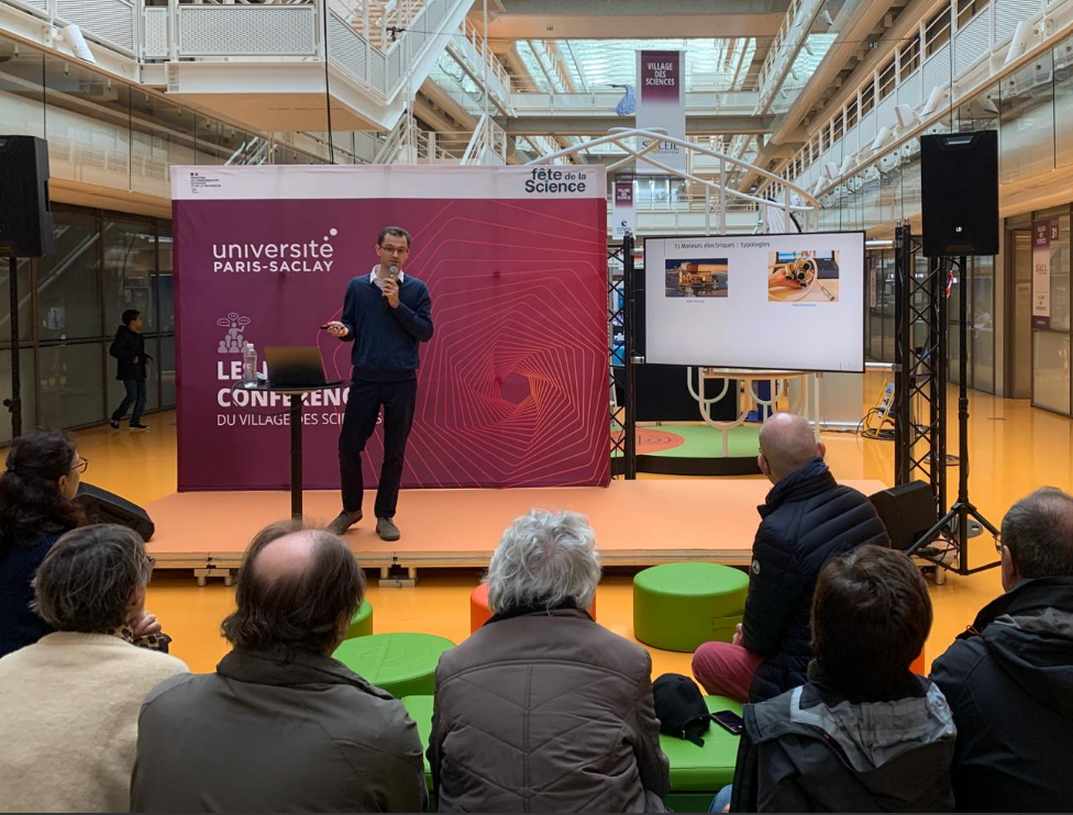 Today, I gave a mini-conference at the “Fête de la Science 2025” at ENS Paris-Saclay on the topological optimization of electric motors, a popularization event. It’s always a pleasure to present my research to the general public! Thanks to Noemi Lanciotti for the photo.